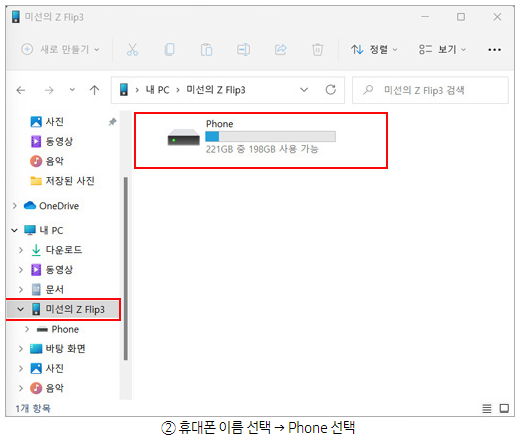 휴대폰에 저장된 동영상/사진 PC로 이동하기