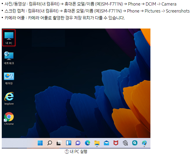 휴대폰에 저장된 사진을 PC로 저장하기 위해서 먼저 PC에 스마트 스위치 및 통합 USB 드라이버를 먼저 설치해 주세요. (통합 USB 드라이버 다운로드 사이트 바로가기)