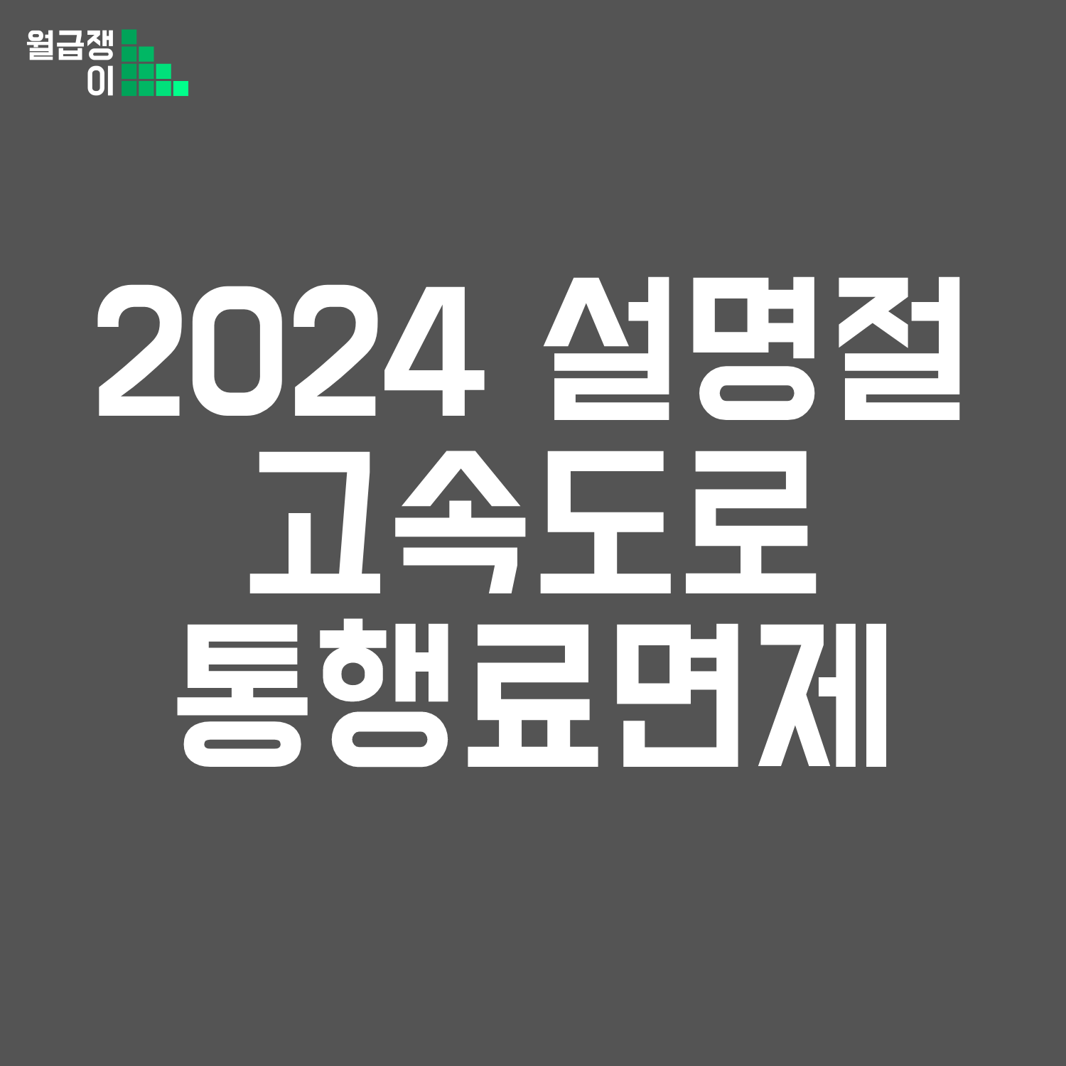 2024년 설날 명절이 얼마 안남았습니다. 24년 설명절 고속도로 통행료 면제 안내를 드립니다. 면제대상은 고속도로를 이용하는 모든 차량으로 2월 9일 0시 부터 2월 12일 24시 까지 적용됩니다.