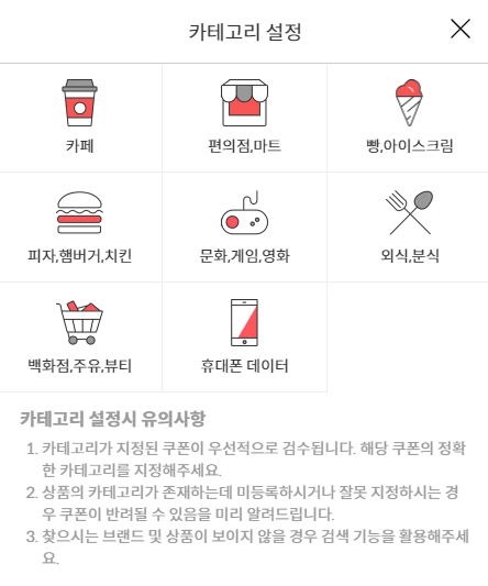 치킨쿠폰이나 피자쿠폰처럼 비싼 쿠폰도 있지만 가볍게 먹을 수 있는 간식 쿠폰들도 편하게 구매가 가능합니다.