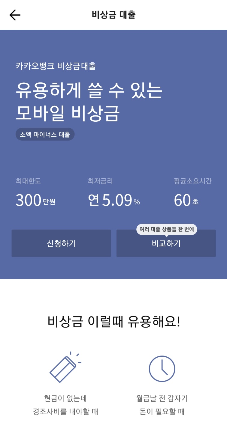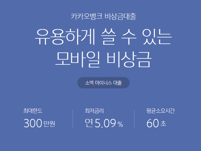 카카오뱅크에는 급할 때 사용할 수 있는 비상금 대출이 있습니다.