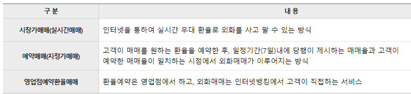 실시간 매매 / 예약 매매 / 영업점 예약환율 매매