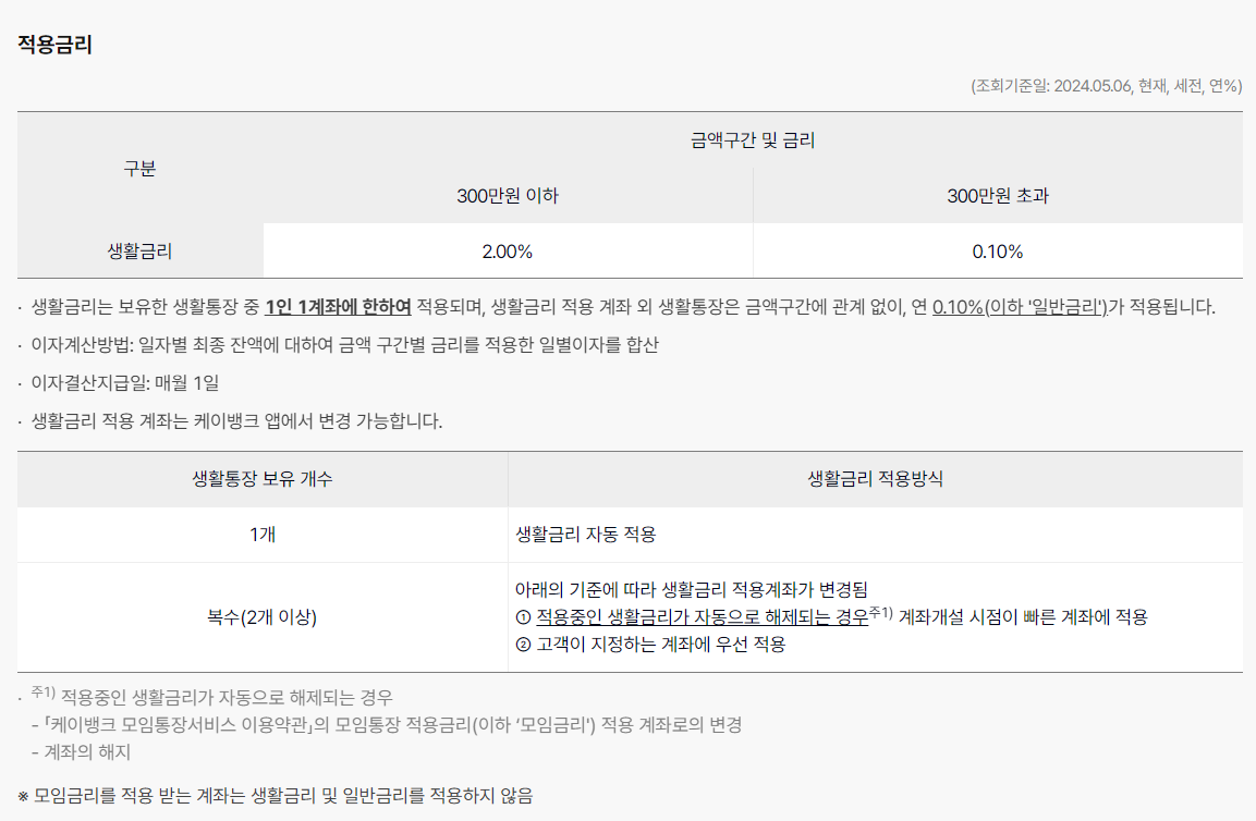 생활비 통장 금리안내