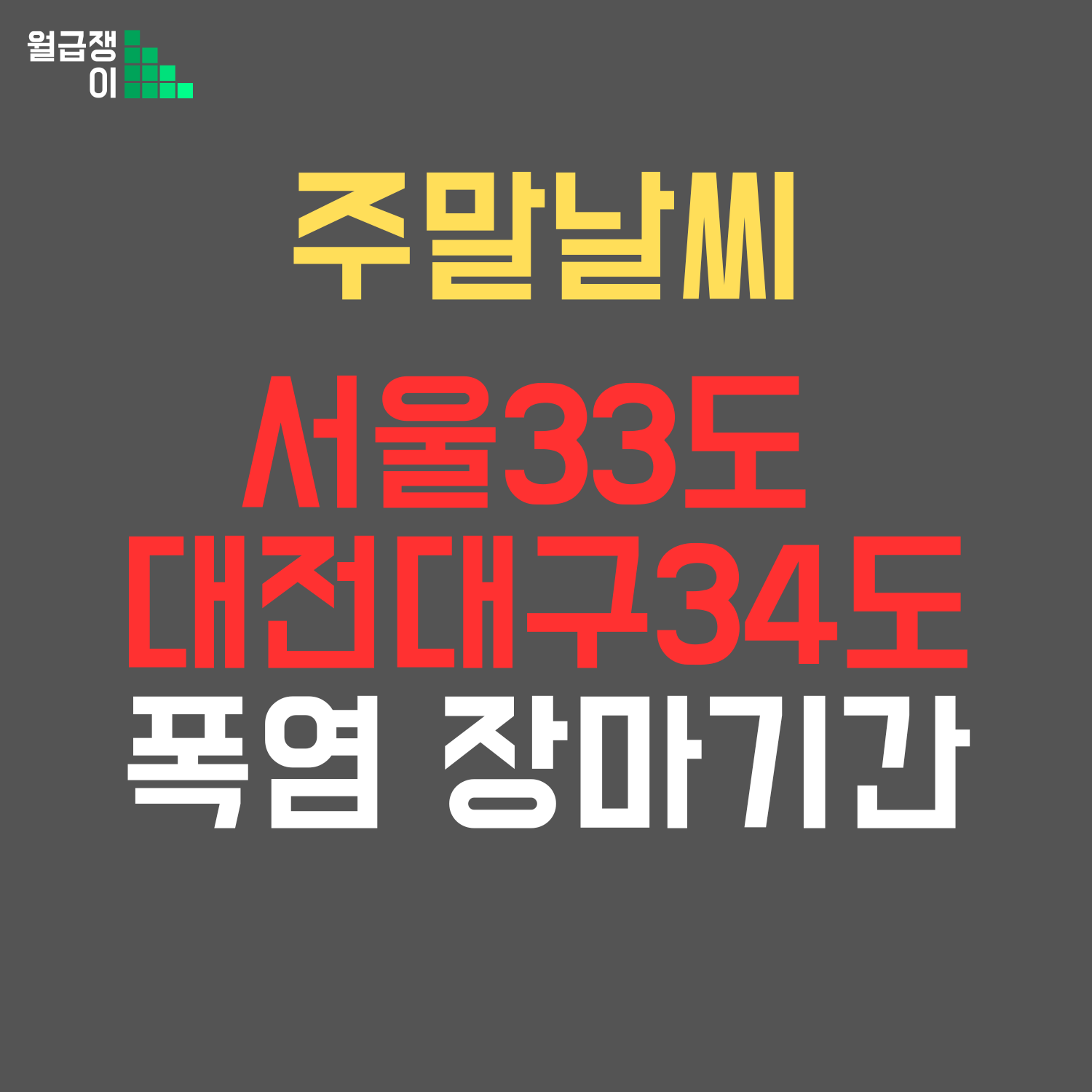 우리 아빠들은 주말에 날씨를 먼저 확인하게 됩니다. 기상청은 금요일 14일 전국날씨 낮최고기온 서울 33도, 대전 34도, 광주 33도, 대구 34도, 부산 28도, 제주도 27도로 기록하면서 무더운 여름날씨를 예보했습니다.